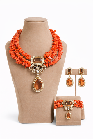 {"id":7766227058765,"title":"Luxury Coral Bead Jewelry Set with Gold Pendant – Necklace, Earrings \u0026 Bracelet","handle":"luxury-coral-bead-jewelry-set-with-gold-pendant-necklace-earrings-bracelet","description":"\u003cp data-start=\"95\" data-end=\"609\"\u003eElevate your traditional look with this exquisite coral and gold jewelry set, designed for elegance and cultural sophistication. Featuring bold cylindrical coral beads paired with intricate gold filigree detailing, this set is perfect for weddings, special occasions, and regal styling. The statement pendant adds a striking focal point, while the matching earrings and bracelet complete a harmonious, luxurious ensemble. Ideal for brides and celebrants seeking a timeless African-inspired look.\u003c\/p\u003e\n\u003cp data-start=\"611\" data-end=\"630\"\u003e\u003cstrong data-start=\"611\" data-end=\"628\"\u003eKey Features:\u003c\/strong\u003e\u003c\/p\u003e\n\u003cul data-start=\"631\" data-end=\"772\" data-is-last-node=\"\" data-is-only-node=\"\"\u003e\n\u003cli data-section-id=\"1g3epuw\" data-start=\"631\" data-end=\"693\"\u003ePremium coral-style beads with detailed gold craftsmanship\u003c\/li\u003e\n\u003cli data-section-id=\"gghvc2\" data-start=\"694\" data-end=\"772\" data-is-last-node=\"\"\u003eComplete 3-piece set: necklace, earrings, and bracelet for a cohesive finish\u003c\/li\u003e\n\u003c\/ul\u003e","published_at":"2026-04-10T14:03:47-04:00","created_at":"2026-04-10T14:03:46-04:00","vendor":"FloFlourish","type":"Africa Women Attires","tags":["Africa Women Attire","Jewelry"],"price":14999,"price_min":14999,"price_max":14999,"available":true,"price_varies":false,"compare_at_price":null,"compare_at_price_min":0,"compare_at_price_max":0,"compare_at_price_varies":false,"variants":[{"id":42859048337485,"title":"Default Title","option1":"Default Title","option2":null,"option3":null,"sku":null,"requires_shipping":true,"taxable":true,"featured_image":null,"available":true,"name":"Luxury Coral Bead Jewelry Set with Gold Pendant – Necklace, Earrings \u0026 Bracelet","public_title":null,"options":["Default Title"],"price":14999,"weight":454,"compare_at_price":null,"inventory_management":"shopify","barcode":"","requires_selling_plan":false,"selling_plan_allocations":[],"quantity_rule":{"min":1,"max":null,"increment":1}}],"images":["\/\/www.floflourish.com\/cdn\/shop\/files\/Nigerianbrideintraditionalattires_1.png?v=1775844101","\/\/www.floflourish.com\/cdn\/shop\/files\/Luxurious_coral_and_gold_jewelry_display.png?v=1775844128"],"featured_image":"\/\/www.floflourish.com\/cdn\/shop\/files\/Nigerianbrideintraditionalattires_1.png?v=1775844101","options":["Title"],"media":[{"alt":null,"id":26836939604045,"position":1,"preview_image":{"aspect_ratio":0.667,"height":1536,"width":1024,"src":"\/\/www.floflourish.com\/cdn\/shop\/files\/Nigerianbrideintraditionalattires_1.png?v=1775844101"},"aspect_ratio":0.667,"height":1536,"media_type":"image","src":"\/\/www.floflourish.com\/cdn\/shop\/files\/Nigerianbrideintraditionalattires_1.png?v=1775844101","width":1024},{"alt":null,"id":26836941078605,"position":2,"preview_image":{"aspect_ratio":0.88,"height":1337,"width":1177,"src":"\/\/www.floflourish.com\/cdn\/shop\/files\/Luxurious_coral_and_gold_jewelry_display.png?v=1775844128"},"aspect_ratio":0.88,"height":1337,"media_type":"image","src":"\/\/www.floflourish.com\/cdn\/shop\/files\/Luxurious_coral_and_gold_jewelry_display.png?v=1775844128","width":1177}],"requires_selling_plan":false,"selling_plan_groups":[],"content":"\u003cp data-start=\"95\" data-end=\"609\"\u003eElevate your traditional look with this exquisite coral and gold jewelry set, designed for elegance and cultural sophistication. Featuring bold cylindrical coral beads paired with intricate gold filigree detailing, this set is perfect for weddings, special occasions, and regal styling. The statement pendant adds a striking focal point, while the matching earrings and bracelet complete a harmonious, luxurious ensemble. Ideal for brides and celebrants seeking a timeless African-inspired look.\u003c\/p\u003e\n\u003cp data-start=\"611\" data-end=\"630\"\u003e\u003cstrong data-start=\"611\" data-end=\"628\"\u003eKey Features:\u003c\/strong\u003e\u003c\/p\u003e\n\u003cul data-start=\"631\" data-end=\"772\" data-is-last-node=\"\" data-is-only-node=\"\"\u003e\n\u003cli data-section-id=\"1g3epuw\" data-start=\"631\" data-end=\"693\"\u003ePremium coral-style beads with detailed gold craftsmanship\u003c\/li\u003e\n\u003cli data-section-id=\"gghvc2\" data-start=\"694\" data-end=\"772\" data-is-last-node=\"\"\u003eComplete 3-piece set: necklace, earrings, and bracelet for a cohesive finish\u003c\/li\u003e\n\u003c\/ul\u003e"}