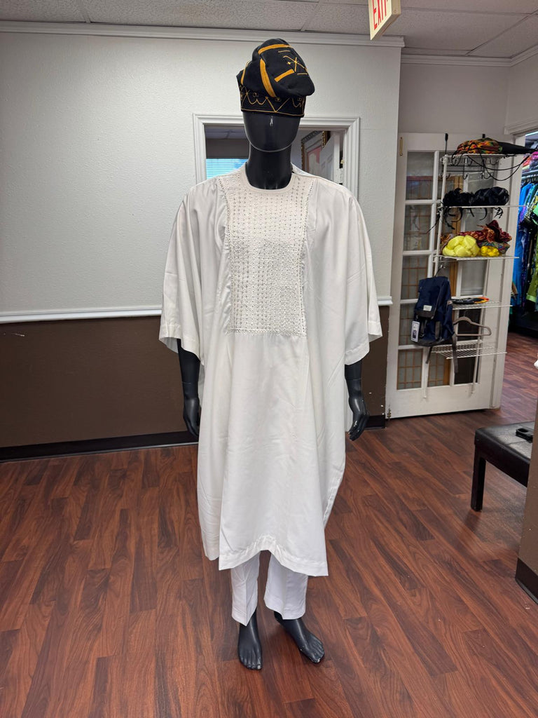 {"id":7539678543949,"title":"Classic White Agbada-Inspired Senator Set","handle":"classic-white-agbada-inspired-senator-set","description":"\u003cp\u003eA refined men’s traditional senator-style ensemble in crisp white, featuring a short-sleeved tunic with a straight cut for a comfortable yet elegant fit. The tunic’s front is adorned with an intricate embroidered panel, adding subtle texture and sophistication. Paired with matching tailored ankle-length trousers for a sleek silhouette. The outfit is completed with a matching white traditional cap, black loafers with gold horse-bit detailing, a gold-accented wristwatch, and stylish eyeglasses, creating a balanced blend of cultural heritage and modern elegance.\u003c\/p\u003e","published_at":"2025-08-07T21:53:38-04:00","created_at":"2025-08-07T21:53:36-04:00","vendor":"FloFlourish","type":"Clothing","tags":["Africa Men Attire","PANT AND TOP"],"price":14999,"price_min":14999,"price_max":14999,"available":true,"price_varies":false,"compare_at_price":19999,"compare_at_price_min":19999,"compare_at_price_max":19999,"compare_at_price_varies":false,"variants":[{"id":42005638807629,"title":"Default Title","option1":"Default Title","option2":null,"option3":null,"sku":null,"requires_shipping":true,"taxable":true,"featured_image":null,"available":true,"name":"Classic White Agbada-Inspired Senator Set","public_title":null,"options":["Default Title"],"price":14999,"weight":499,"compare_at_price":19999,"inventory_management":"shopify","barcode":"","requires_selling_plan":false,"selling_plan_allocations":[]}],"images":["\/\/www.floflourish.com\/cdn\/shop\/files\/WhatsAppImage2025-08-07at7.44.42PM_1.jpg?v=1754617785","\/\/www.floflourish.com\/cdn\/shop\/files\/WhatsApp_Image_2025-10-11_at_4.01.13_PM_1.jpg?v=1760216499"],"featured_image":"\/\/www.floflourish.com\/cdn\/shop\/files\/WhatsAppImage2025-08-07at7.44.42PM_1.jpg?v=1754617785","options":["Title"],"media":[{"alt":null,"id":25480547434573,"position":1,"preview_image":{"aspect_ratio":0.667,"height":1536,"width":1024,"src":"\/\/www.floflourish.com\/cdn\/shop\/files\/WhatsAppImage2025-08-07at7.44.42PM_1.jpg?v=1754617785"},"aspect_ratio":0.667,"height":1536,"media_type":"image","src":"\/\/www.floflourish.com\/cdn\/shop\/files\/WhatsAppImage2025-08-07at7.44.42PM_1.jpg?v=1754617785","width":1024},{"alt":null,"id":25772589416525,"position":2,"preview_image":{"aspect_ratio":0.75,"height":1600,"width":1200,"src":"\/\/www.floflourish.com\/cdn\/shop\/files\/WhatsApp_Image_2025-10-11_at_4.01.13_PM_1.jpg?v=1760216499"},"aspect_ratio":0.75,"height":1600,"media_type":"image","src":"\/\/www.floflourish.com\/cdn\/shop\/files\/WhatsApp_Image_2025-10-11_at_4.01.13_PM_1.jpg?v=1760216499","width":1200}],"requires_selling_plan":false,"selling_plan_groups":[],"content":"\u003cp\u003eA refined men’s traditional senator-style ensemble in crisp white, featuring a short-sleeved tunic with a straight cut for a comfortable yet elegant fit. The tunic’s front is adorned with an intricate embroidered panel, adding subtle texture and sophistication. Paired with matching tailored ankle-length trousers for a sleek silhouette. The outfit is completed with a matching white traditional cap, black loafers with gold horse-bit detailing, a gold-accented wristwatch, and stylish eyeglasses, creating a balanced blend of cultural heritage and modern elegance.\u003c\/p\u003e"}