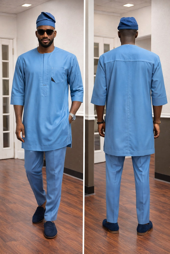Refined, modern, and effortlessly stylish, this Sky Blue Senator Set is tailored for a Large-size frame and 5.8ft height, offering a clean silhouette with subtle statement details.