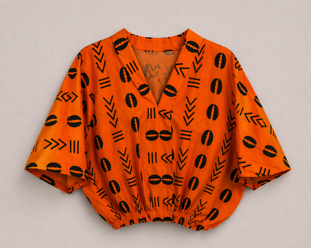 Turn heads effortlessly in this vibrant Ankara two-piece set, designed for the confident, modern woman. Featuring a bold orange base with striking black tribal-inspired prints, this set combines culture and contemporary style. The cropped top offers a relaxed yet structured fit with soft volume, while the high-waisted wide-leg pants provide comfort and elegance in one fluid silhouette. Perfect for day-to-night styling, vacations, brunch, or statement occasions, this set delivers both versatility and standout appeal.