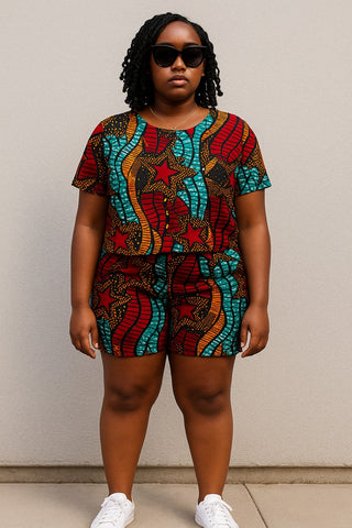 Casual Ankara Spark: African Print Crop Top & Shorts Set"
