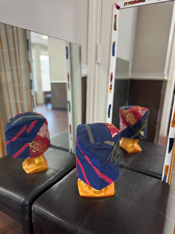 Fabric & Texture The fila is crafted from handwoven Asooke, a traditional Yoruba textile known for its durability and rich woven texture. The weave structure is slightly raised, giving the cap...