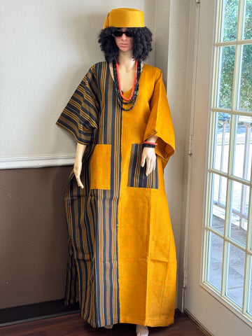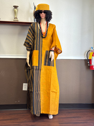 Mustard and Black Mix Aso-Oke Panel Bubu Dress