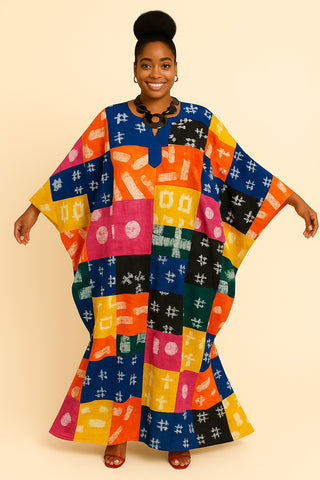 This multicolor patchwork tie-dye batwing bubu is a striking fusion of bold hues and artistic patterns, crafted for a modern yet traditional statement look. Featuring a round neckline accented with...