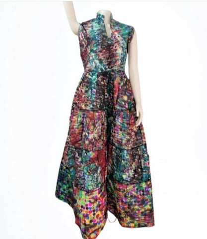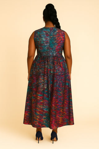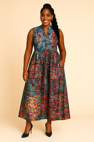 Celebrate the vibrancy of African artistry with the Spectrum Majesty Tie-Dye Maxi Dress. Crafted from a structured yet lightweight fabric, this sleeveless dress features a captivating mix of multicolored tie-dye...