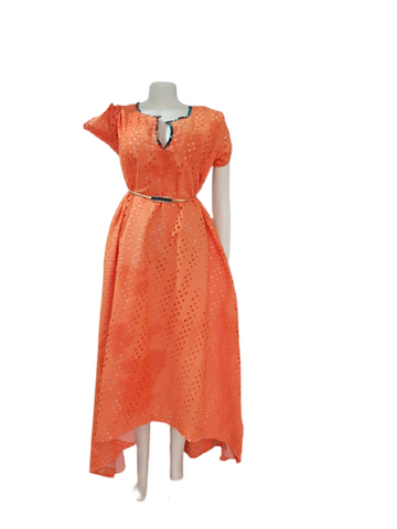 This vibrant orange mini dress exudes effortless elegance with its eyelet embroidery detail and flattering A-line silhouette. Designed with a round neckline featuring a subtle front slit, the dress captures...