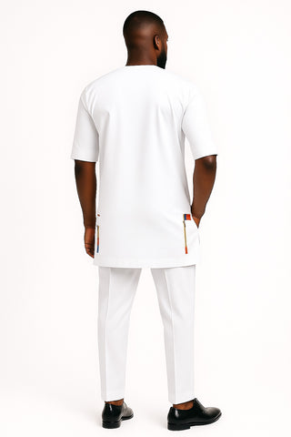 This clean-cut kaftan ensemble showcases modern African sophistication with a sharp round neckline and a discreet zipper at the left shoulder for subtle flair. Crafted in a crisp monochrome tone,...