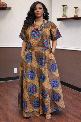 Ankara Flare Maxi Skirt & Short-Sleeve Crop Top Set