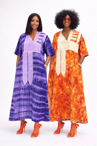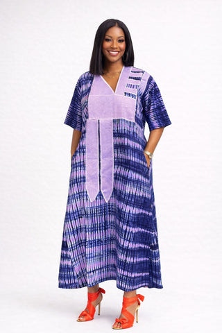 The Lavender Tide Raffia-Panel Tie-Dye Flow Dress is a beautiful fusion of African craftsmanship and relaxed modern elegance. Designed to flatter a size 12 frame at 6ft height, this dress...