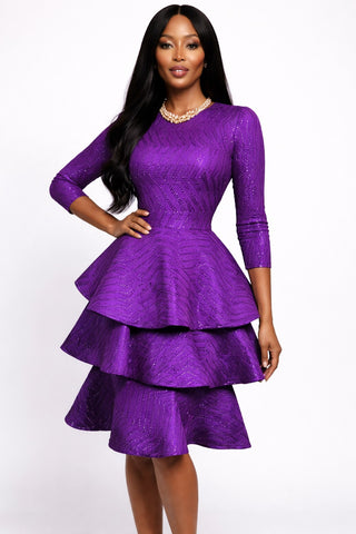 Amethyst Grace – 3-Layer Spiral Midi Dress