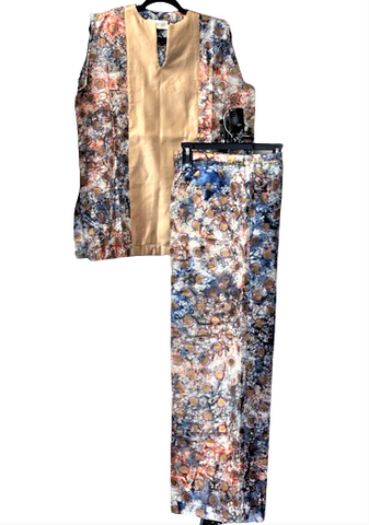 A stylish light blue native two-piece set featuring a long-sleeved embroidered tunic with a matching straight-cut trouser. Finished with a traditional African cap for a complete, elegant look. Let me...