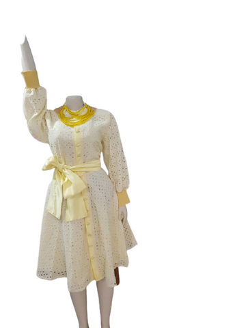 This vibrant Ankara shirt features a bold geometric pattern in yellow, red, white, and brown on a black base. Designed with a classic button-down front and a sharp collar, it's...