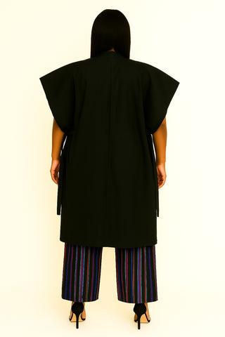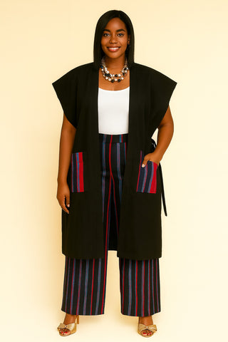 Aso-Oke Mix Palazzo Pant with Open-Sleeve Rope-Tie Jacket