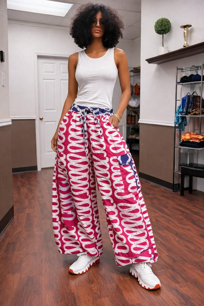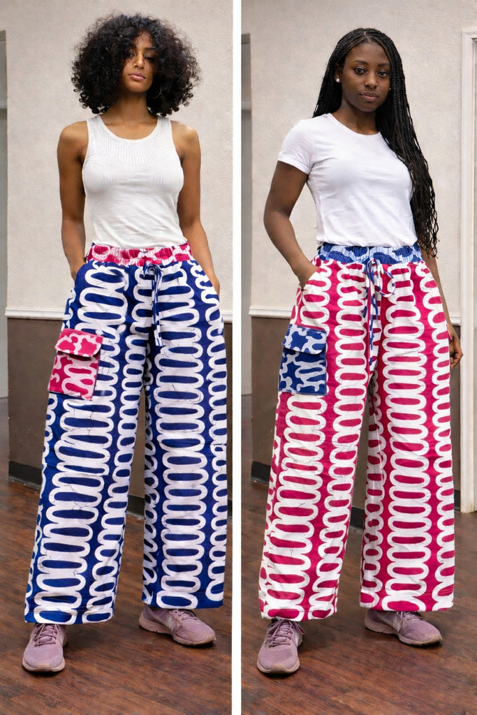 Designed for confident, free-spirited style, this tie-dye baggy combat pant delivers maximum comfort with bold visual impact. The extra-wide, flowing silhouette creates effortless movement, while the matching waist-fabric side combat pocket keeps the design seamless and intentional. Styled with a neatly tucked-in tank top, this piece blends modern streetwear with artistic African-inspired expression. Perfect for casual luxury wear, creative outings, and statement everyday looks, it’s made for women who embrace comfort without compromising style.
