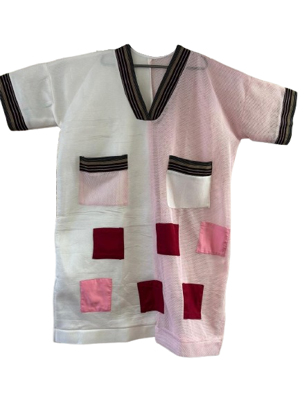 This contemporary Net Aso-Oke dress is designed with a 24-inch wide body for a relaxed, elegant fit. It features six bold square patches arranged in two perfectly horizontal rows of...